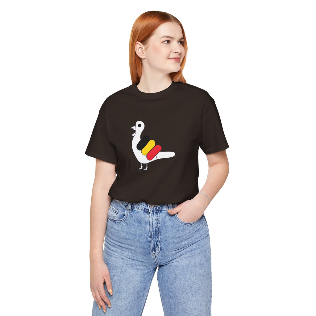 This classic unisex jersey short sleeve tee fits like a well-loved favorite. Soft cotton and quality print make users fall in love with it over and over again. These t-shirts have-ribbed knit collars to bolster shaping. The shoulders are tapered for a better fit over time. Dual side seams hold the garment's shape for longer.