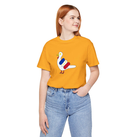 This classic unisex jersey short sleeve tee fits like a well-loved favorite. Soft cotton and quality print make users fall in love with it over and over again. These t-shirts have-ribbed knit collars to bolster shaping. The shoulders are tapered for a better fit over time. Dual side seams hold the garment's shape for longer.